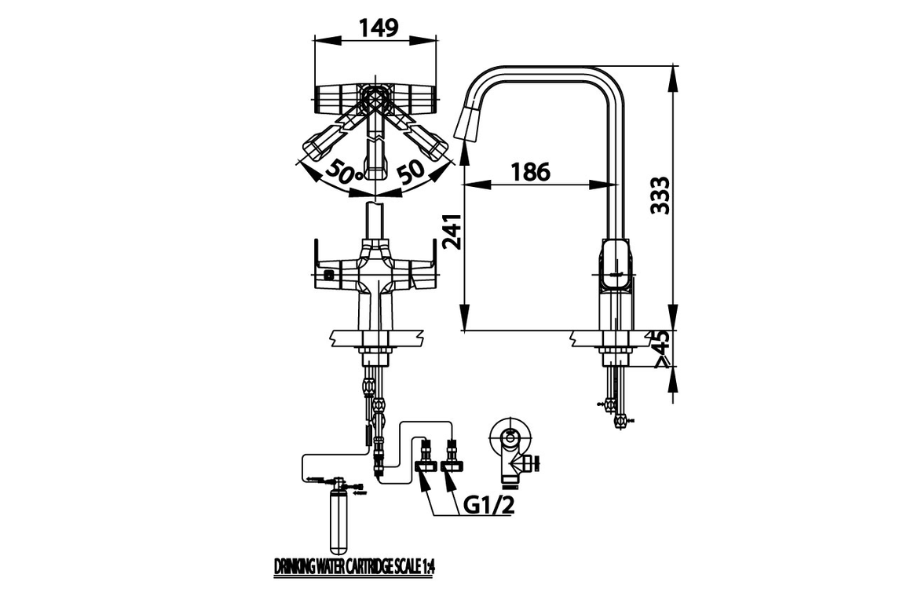 Tích hợp bộ lọc nước, có thể sử dụng làm vòi uống nước trực tiếp hoặc vòi rửa thông thường.