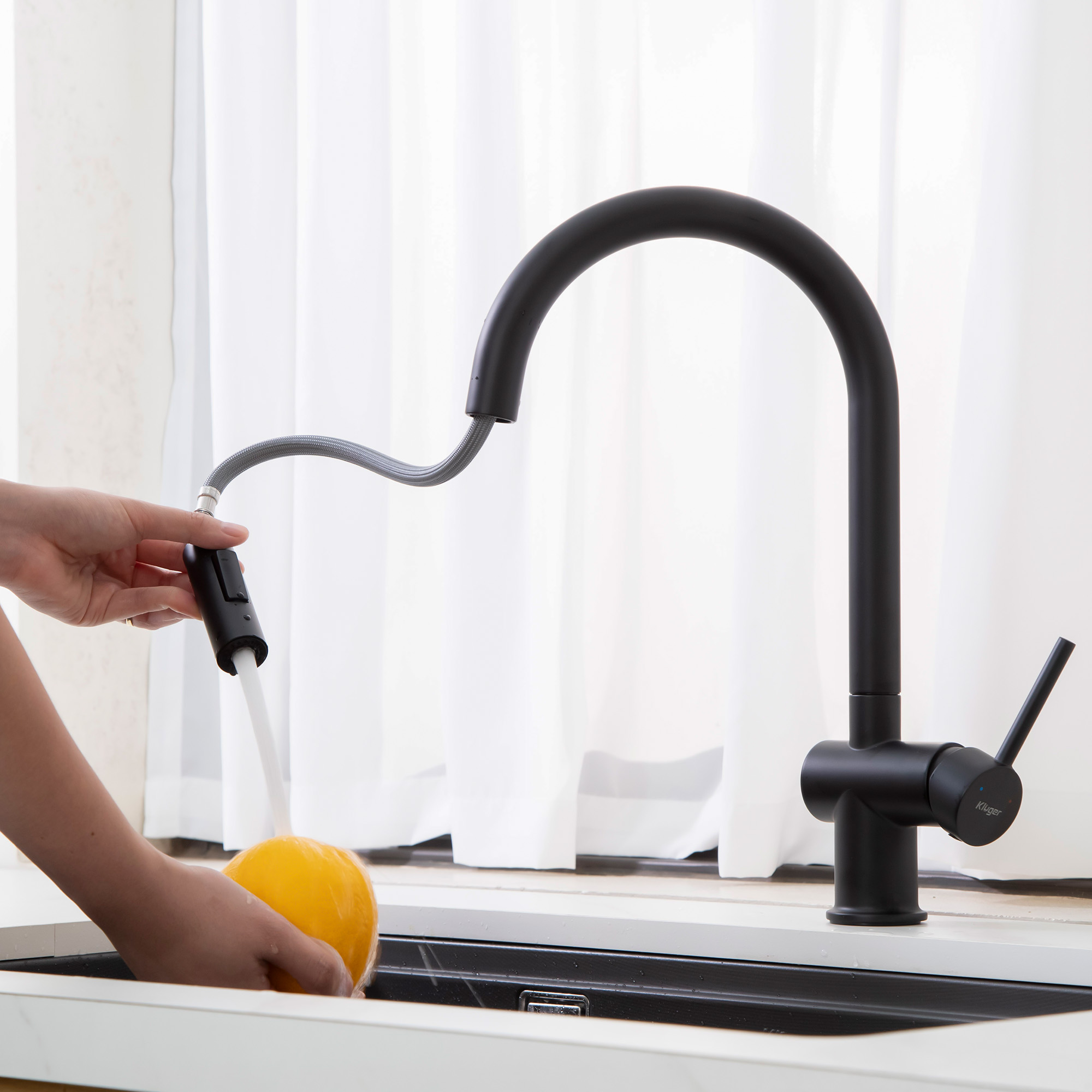 Được nghiên cứu và thiết kế với sự tỉ mỉ và chú trọng đến từng chi tiết, vòi rửa bát Kluger hiện đại hòa quyện một phong cách hoàn hảo giữa hình thức và chức năng, tạo ra một điểm nhấn nổi bật về không gian cho căn bếp.