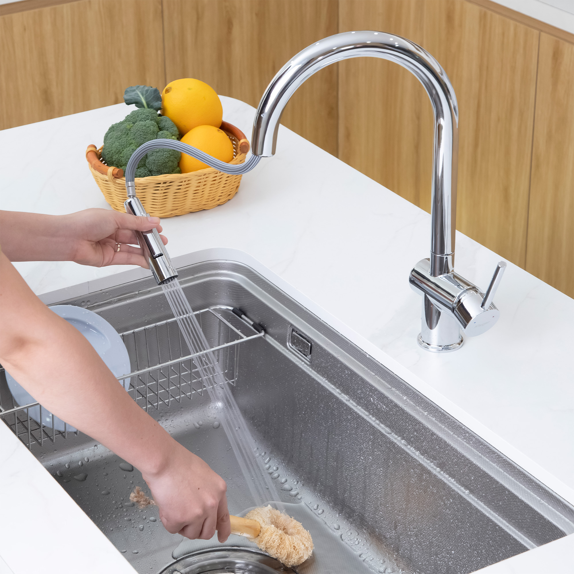 Tiện lợi cho chậu đôi: Chức năng kéo rút đặc biệt hữu ích khi bạn sử dụng chậu rửa đôi, cho phép bạn dễ dàng di chuyển đầu vòi từ hố này sang hố khác mà không cần di chuyển cả vòi.