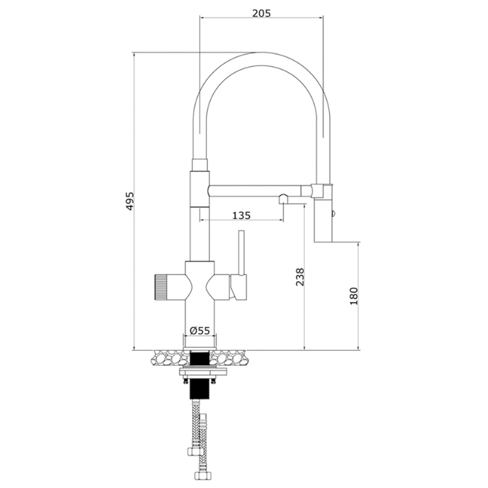 - Vòi thân mềm kéo ra linh hoạt, mở rộng phạm vi thao tác làm bếp