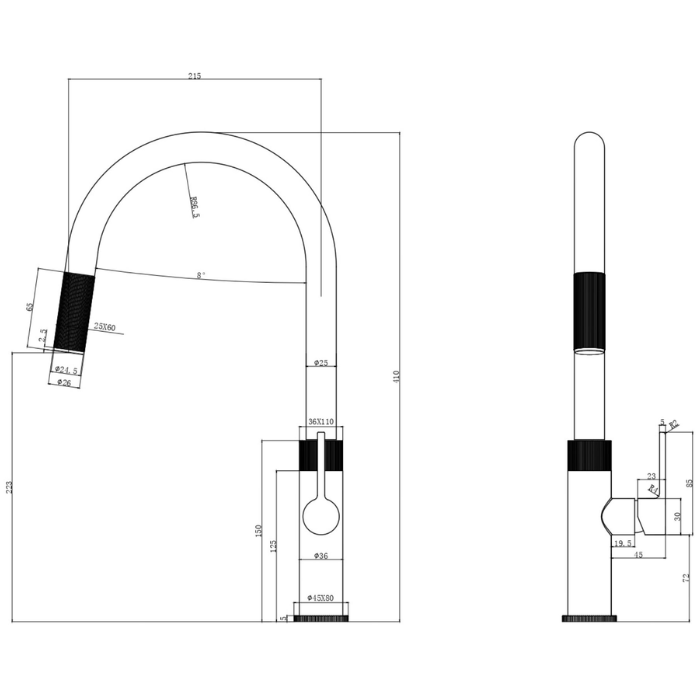• Thân vòi xoay 360 độ cho phạm vi tiếp cận lớn