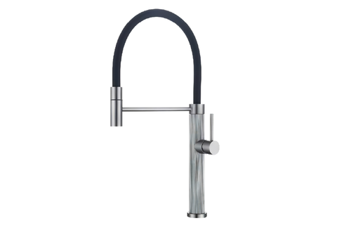 Phần cổ vòi được chế tạo từ vật liệu Silicone cao cấp giúp mang lại tính linh hoạt cao khi người dùng có thể dễ dàng kéo ra và thu vào để sử dụng. Điều này đặc biệt thuận tiện khi bạn cần rửa rau củ, nồi hoặc vệ sinh các khu vực trong chậu rửa mà không cần di chuyển vòi nhiều lần.