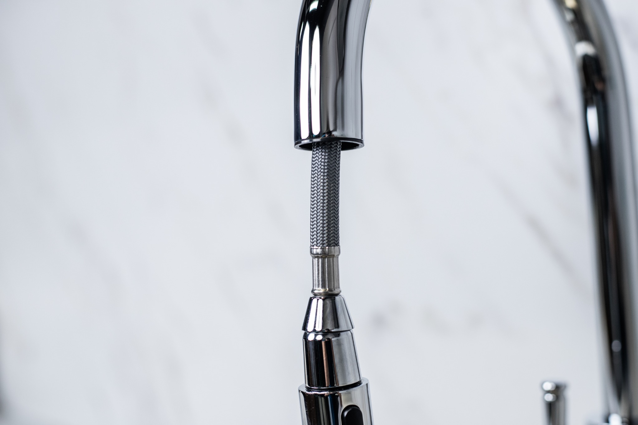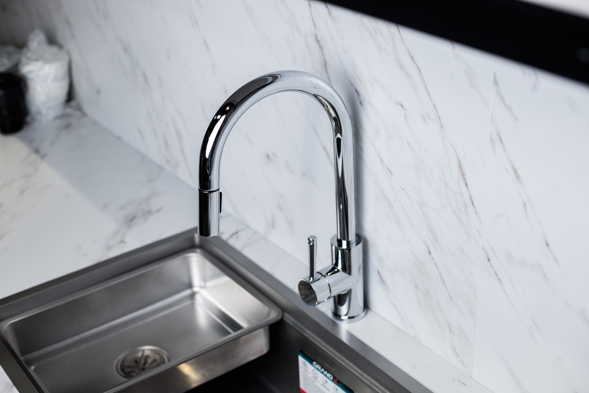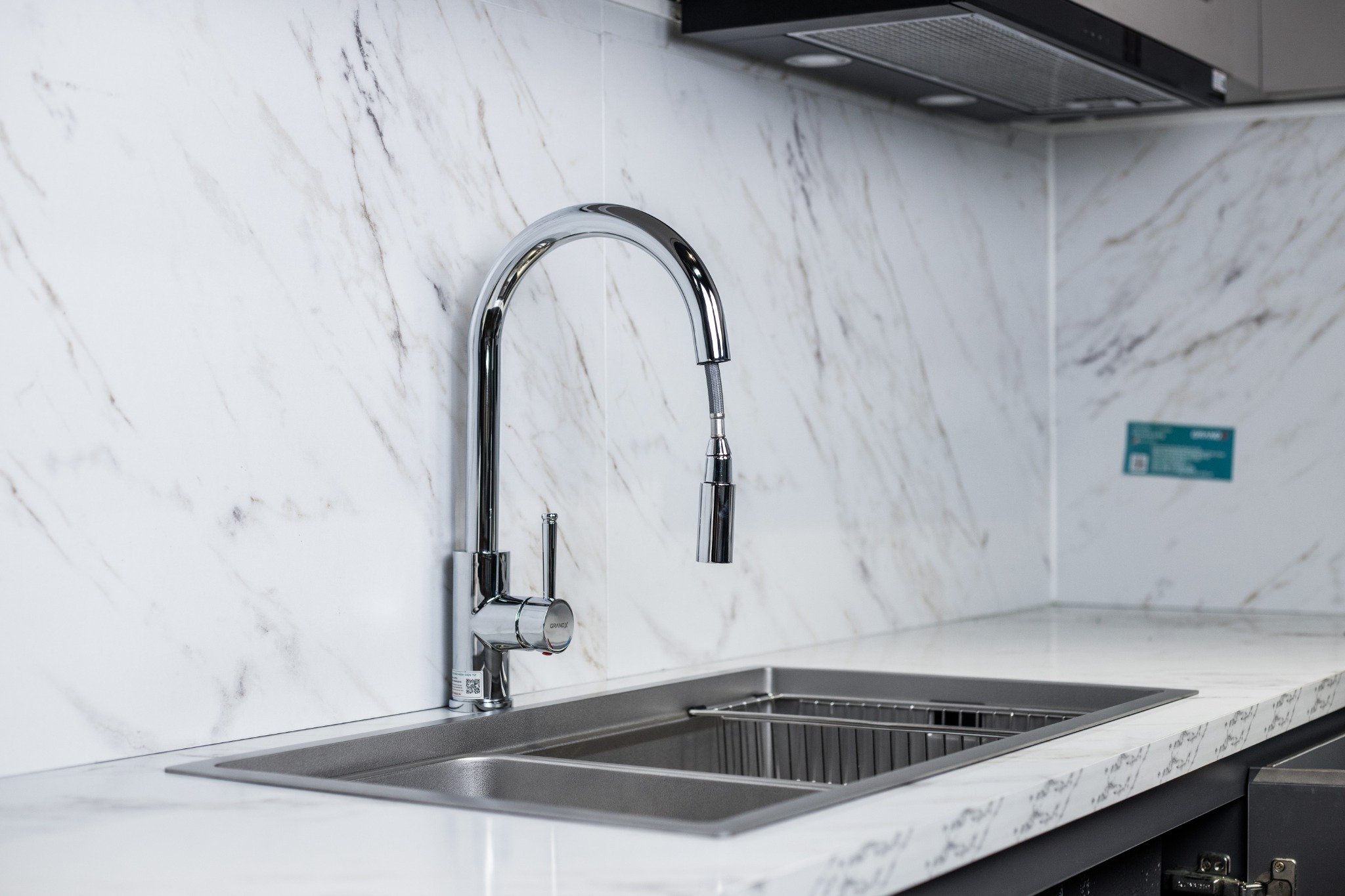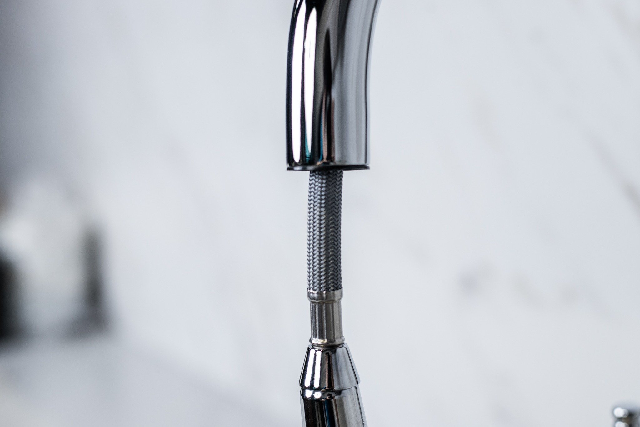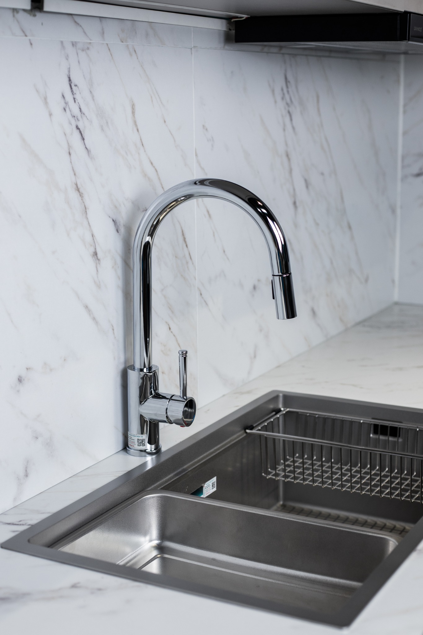 Bề mặt vòi được mạ PVD Chrome sáng bóng giúp chống bám bẩn, dễ vệ sinh và duy trì độ mới lâu dài, ngay cả trong môi trường ẩm ướt của nhà bếp.