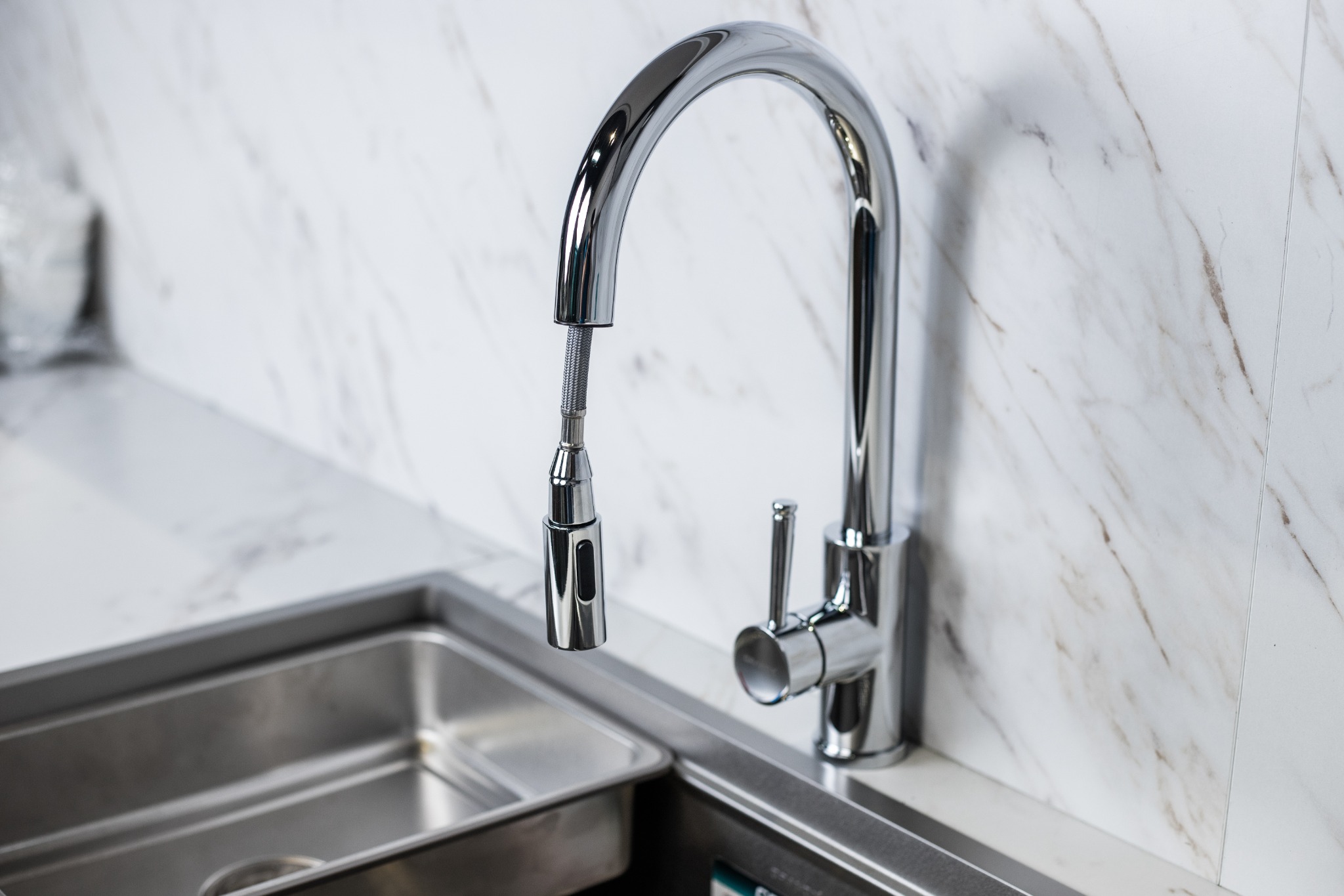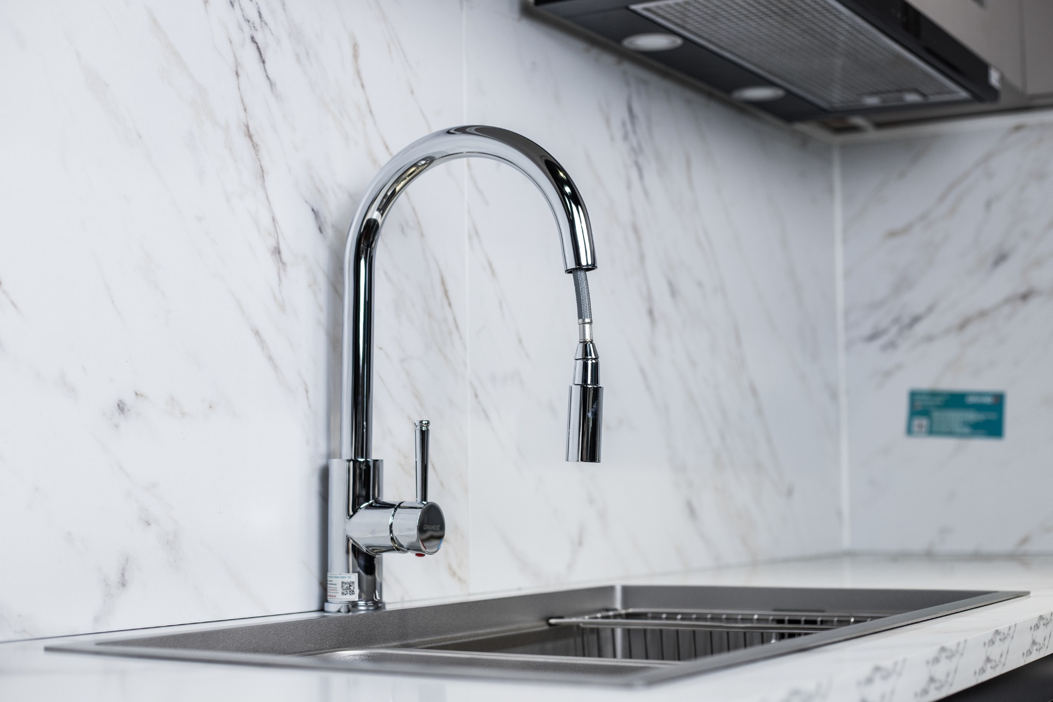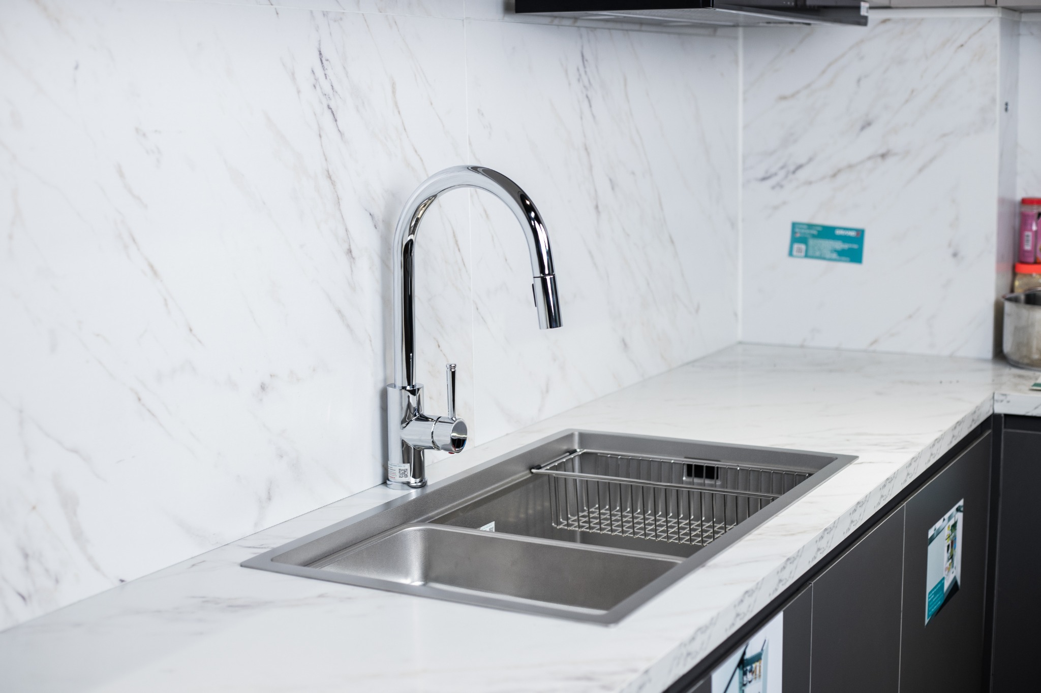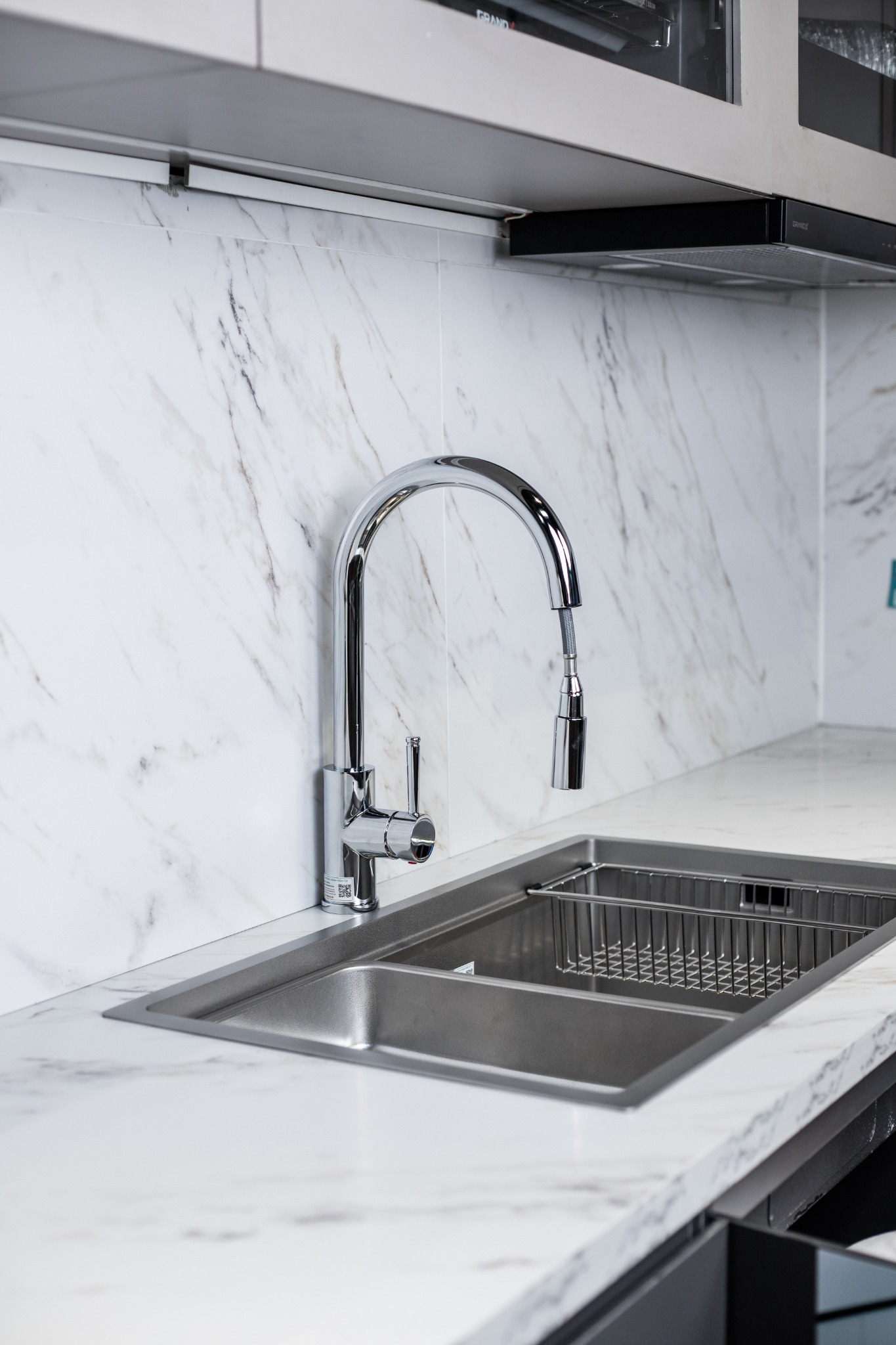 Bề mặt vòi được mạ PVD Chrome sáng bóng giúp chống bám bẩn, dễ vệ sinh và duy trì độ mới lâu dài, ngay cả trong môi trường ẩm ướt của nhà bếp.