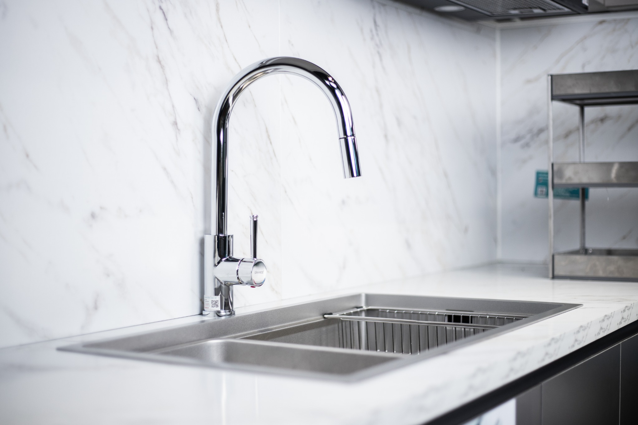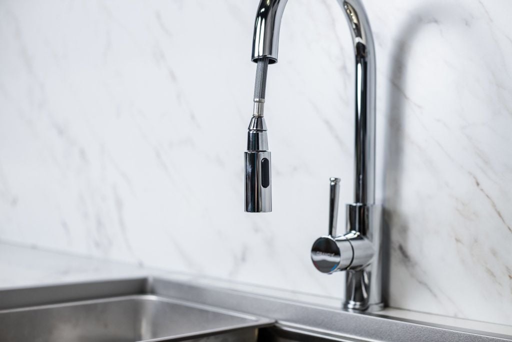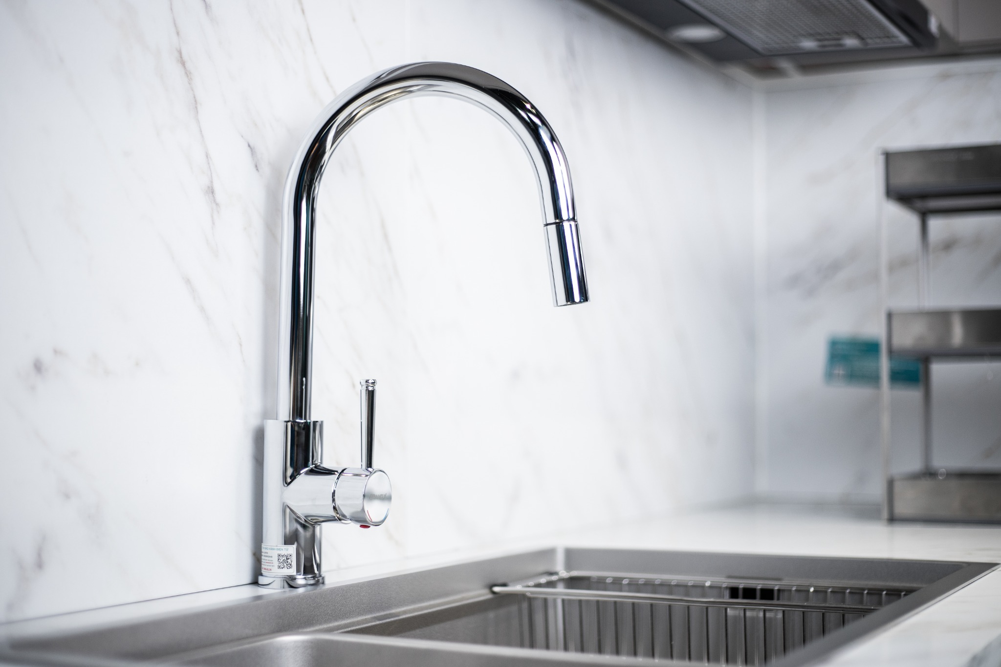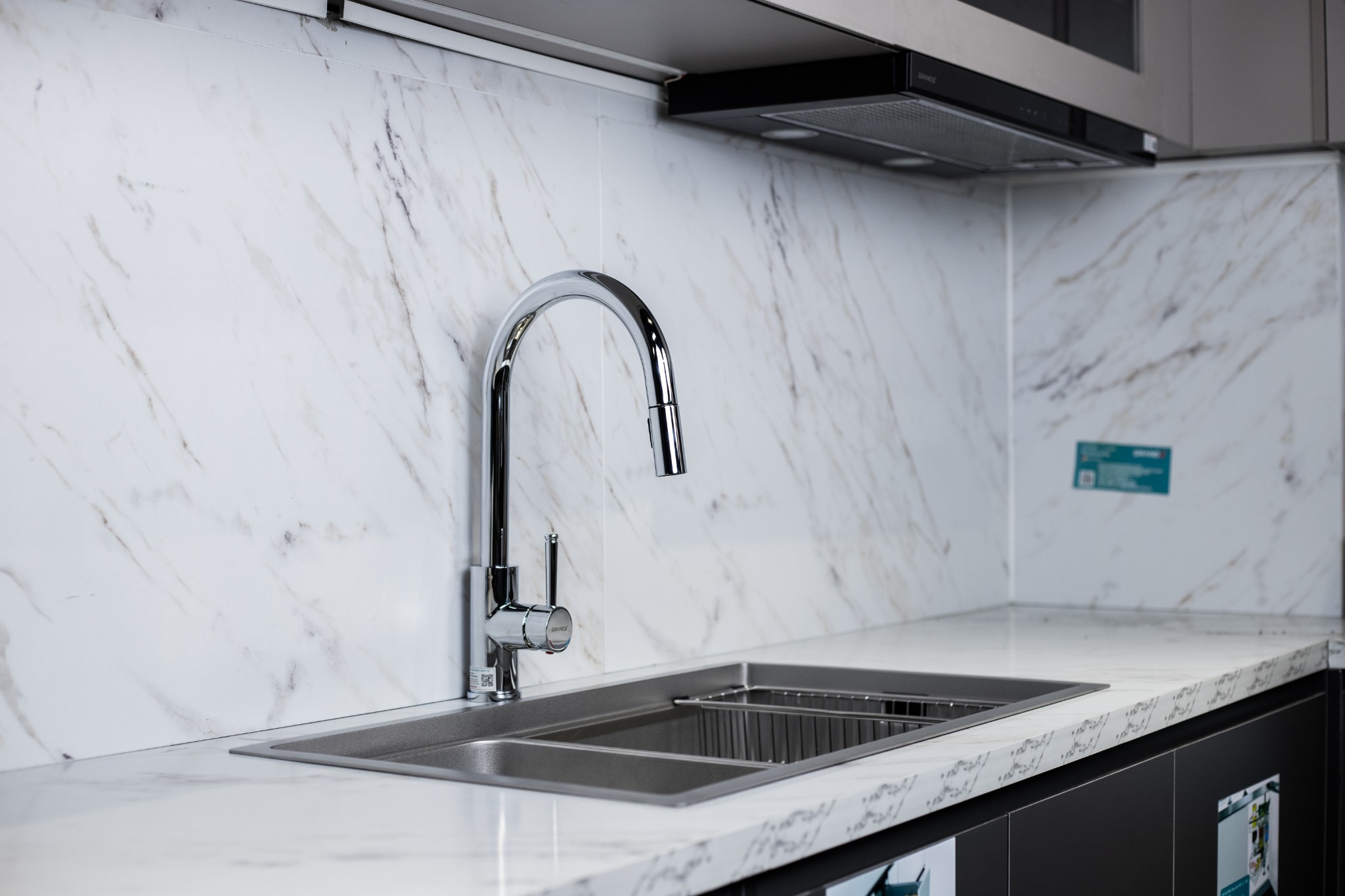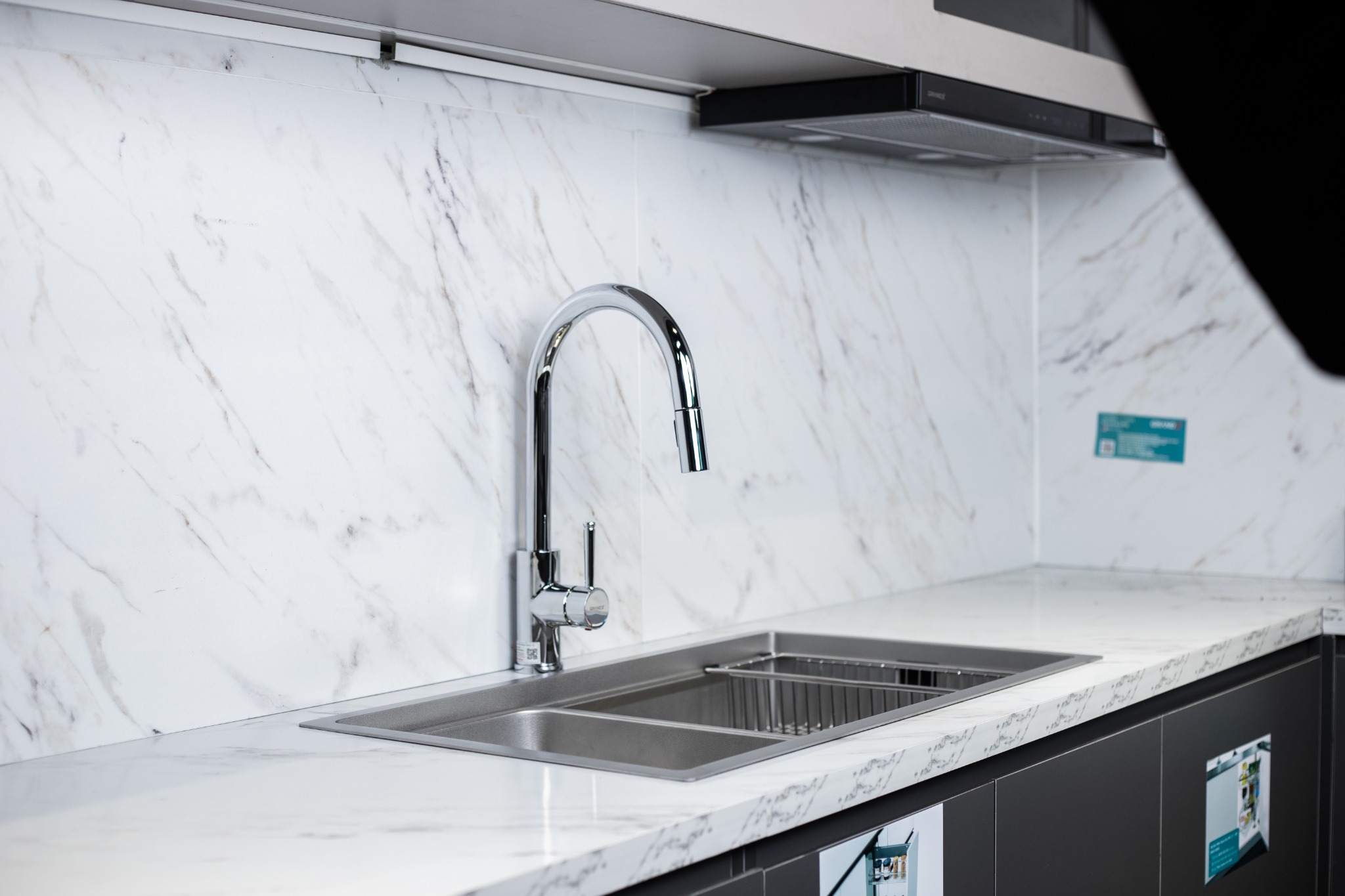 Bề mặt vòi được mạ PVD Chrome sáng bóng giúp chống bám bẩn, dễ vệ sinh và duy trì độ mới lâu dài, ngay cả trong môi trường ẩm ướt của nhà bếp.