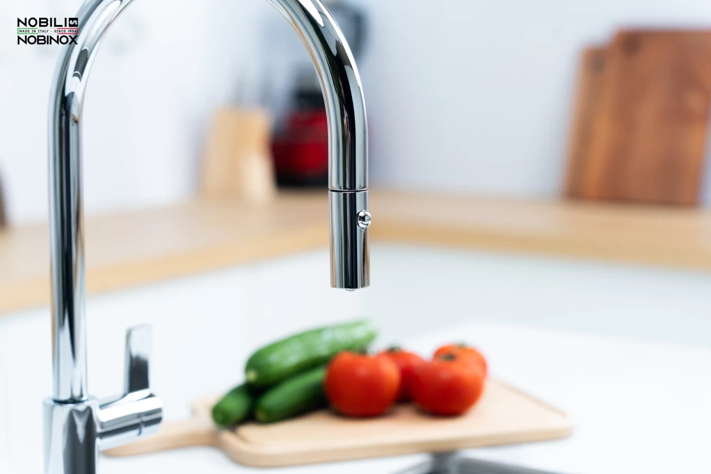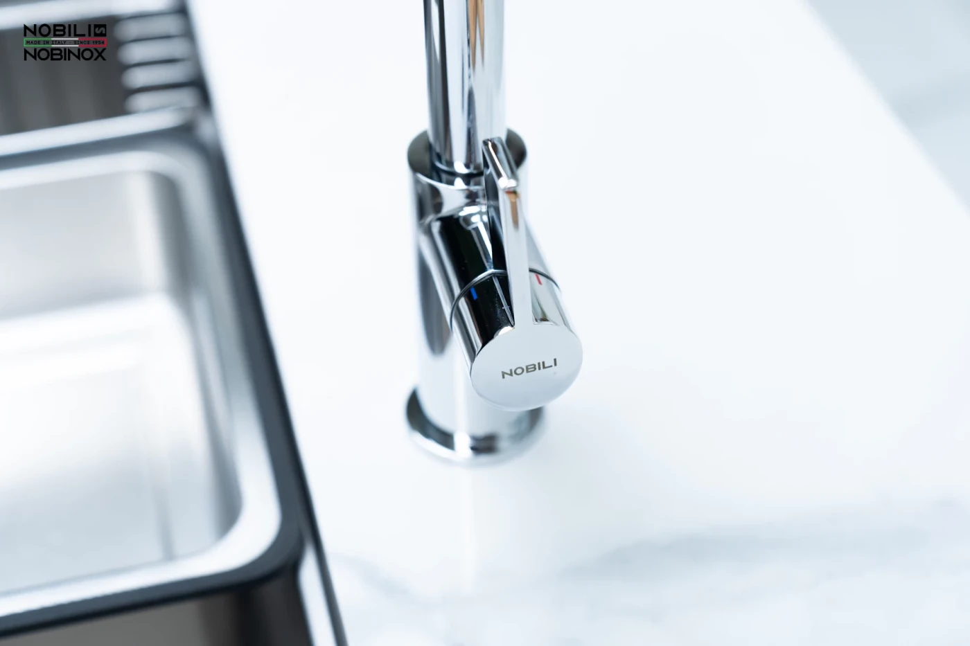 Các dòng vòi rửa bát nóng lạnh Nobili còn được trang bị bộ giới hạn nhiệt tích hợp – một giải pháp an toàn thông minh giúp kiểm soát nhiệt độ nước đầu ra, ngăn ngừa nguy cơ bỏng do nước quá nóng, đặc biệt hữu ích với gia đình có trẻ nhỏ hoặc người lớn tuổi.