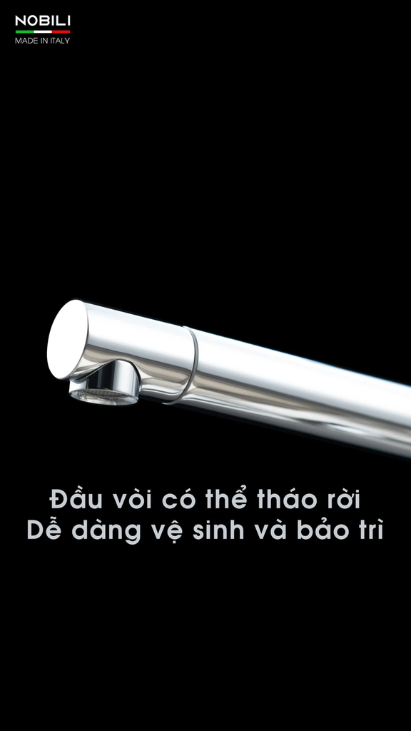 Lớp mạ Chrome hoàn thiện sáng bóng, đảm bảo độ bền cao, chống bám bẩn hiệu quả: Công nghệ mạ Chrome của vòi bếp Nobili không chỉ tạo nên lớp bề mặt sáng bóng sang trọng mà còn đảm bảo độ bền vượt trội theo thời gian. Áp dụng quy trình mạ nhiều lớp đạt chuẩn châu Âu, lớp chrome trên vòi Nobili giúp chống oxy hóa, chống trầy xước và dễ dàng vệ sinh, giữ cho sản phẩm luôn như mới sau thời gian dài sử dụng. Nhờ lớp phủ đồng đều, bám chắc, vòi không bị bong tróc dưới tác động của nước nóng, hóa chất tẩy rửa hay độ ẩm cao – đáp ứng hoàn hảo tiêu chuẩn của một gian bếp hiện đại và tinh tế.