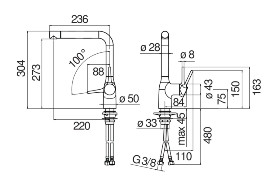 - Dòng sản phẩm: Vòi rửa bát cần cứng nóng lạnh