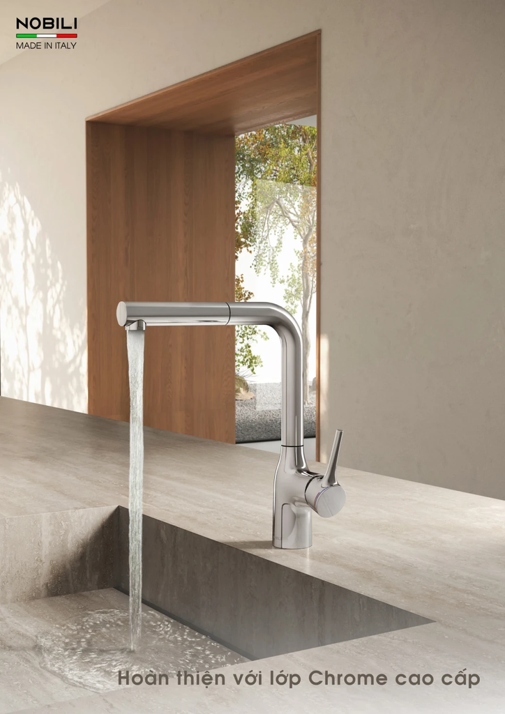Công nghệ mạ Chrome của vòi bếp Nobili không chỉ tạo nên lớp bề mặt sáng bóng sang trọng mà còn đảm bảo độ bền vượt trội theo thời gian. Áp dụng quy trình mạ nhiều lớp đạt chuẩn châu Âu, lớp chrome trên vòi Nobili giúp chống oxy hóa, chống trầy xước và dễ dàng vệ sinh, giữ cho sản phẩm luôn như mới sau thời gian dài sử dụng. Nhờ lớp phủ đồng đều, bám chắc, vòi không bị bong tróc dưới tác động của nước nóng, hóa chất tẩy rửa hay độ ẩm cao – đáp ứng hoàn hảo tiêu chuẩn của một gian bếp hiện đại và tinh tế.
