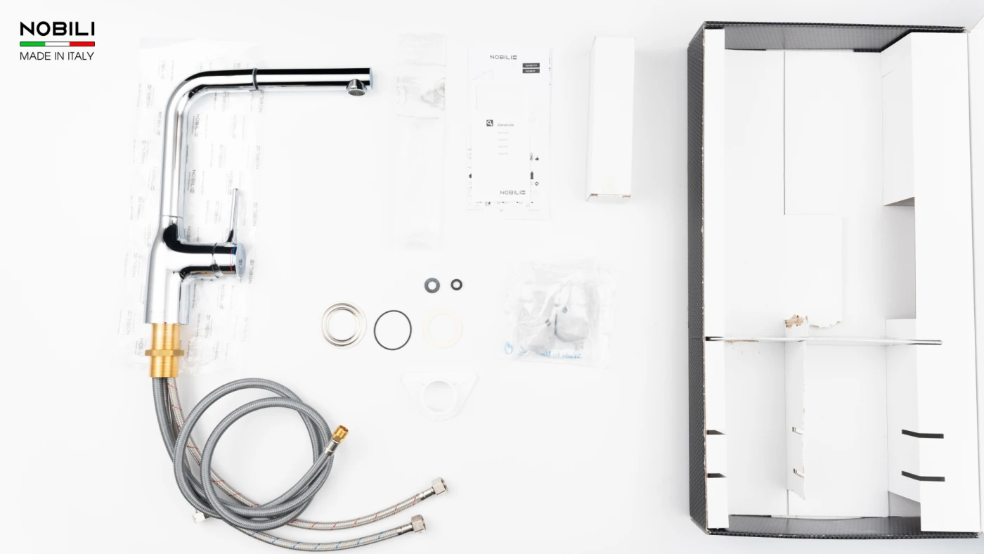 Toàn bộ linh phụ kiện của vòi rửa bát Nobili đều được nhập khẩu trực tiếp từ Ý, đảm bảo tiêu chuẩn chất lượng châu Âu nghiêm ngặt. Từ lõi trộn nước đến đầu vòi, từng chi tiết đều được gia công chính xác, bền bỉ theo thời gian, mang đến trải nghiệm sử dụng mượt mà, an toàn và đậm chất Ý trong từng thao tác.