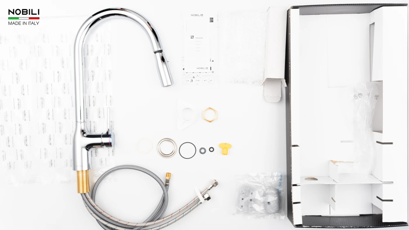 Toàn bộ linh phụ kiện của vòi rửa bát Nobili đều được nhập khẩu trực tiếp từ Ý, đảm bảo tiêu chuẩn chất lượng châu Âu nghiêm ngặt. Từ lõi trộn nước đến đầu vòi, từng chi tiết đều được gia công chính xác, bền bỉ theo thời gian, mang đến trải nghiệm sử dụng mượt mà, an toàn và đậm chất Ý trong từng thao tác.