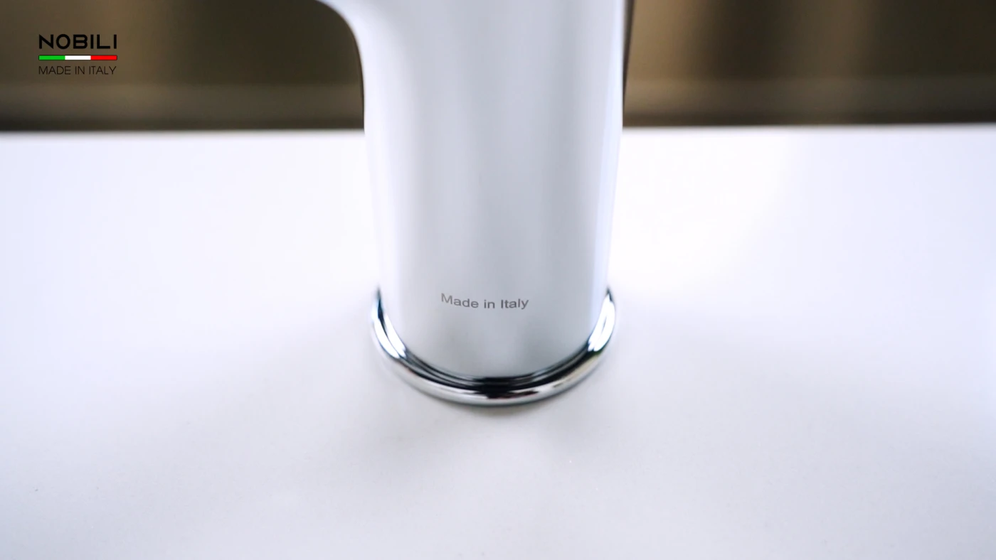 Vòi rửa bát cần cứng Nobili RING NB132 được sản xuất nguyên khối bằng công nghệ hiện đại tại Ý, trải qua quy trình khép kín ngay trong nhà máy Nobili – từ khâu đúc đồng nguyên chất, gia công chi tiết cho đến hoàn thiện từng linh kiện nhỏ nhất. Chính sự tỉ mỉ này mang lại cho sản phẩm chất lượng đồng nhất, bền vững và tinh xảo vượt trội.