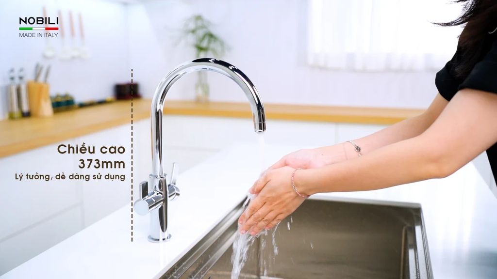 Vòi rửa bát 3 đường nước NOBILI ROSA NB164 không chỉ ghi điểm với thiết kế hiện đại, thanh thoát mà còn được tích hợp bộ giới hạn nhiệt thông minh, giúp kiểm soát nhiệt độ nước đầu ra một cách an toàn, ngăn ngừa nguy cơ bỏng do nước quá nóng. Đây là tính năng đặc biệt hữu ích cho những gia đình có trẻ nhỏ hoặc người lớn tuổi, mang đến sự yên tâm tối đa trong quá trình sử dụng.