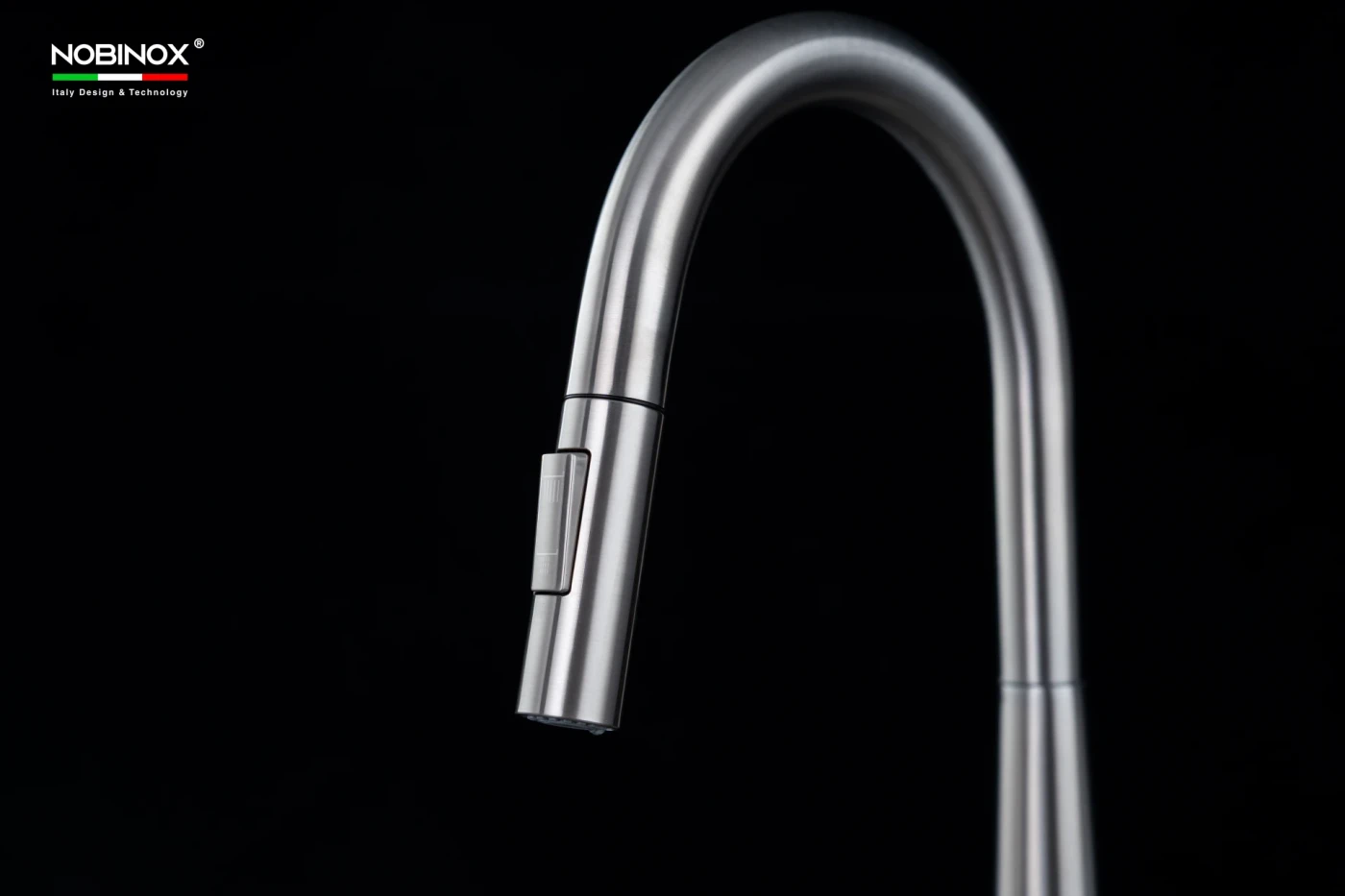 VÒI RỬA BÁT DÂY RÚT NOBINOX WINTO NX501 là sự kết hợp tinh tế giữa vẻ đẹp vượt thời gian và nét hiện đại. Lấy cảm hứng từ những đường cong mềm mại và chi tiết tinh xảo của phong cách cổ điển, WINTO NX501 đã được lược bỏ bớt những chi tiết rườm rà để hòa hợp hoàn hảo với không gian bếp đương đại. Thiết kế cổ ngỗng duyên dáng, tay vòi tối giản không chỉ mang lại vẻ đẹp thanh lịch, mà còn tối ưu hóa công năng với tính năng dây rút tiện lợi, biến WINTO NX501 thành điểm nhấn sang trọng và tiện nghi cho mọi căn bếp.